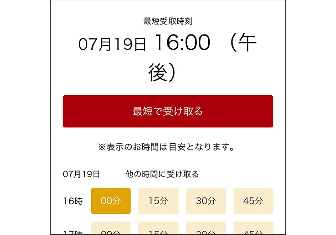 注文完了メールに記載れている受付番号がディスプレイに表示されていればお渡し可能です